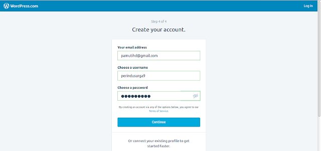 8. Setelah memilih alamat websitenya, saya memilih alamat web "perindusurga.home.blog.
